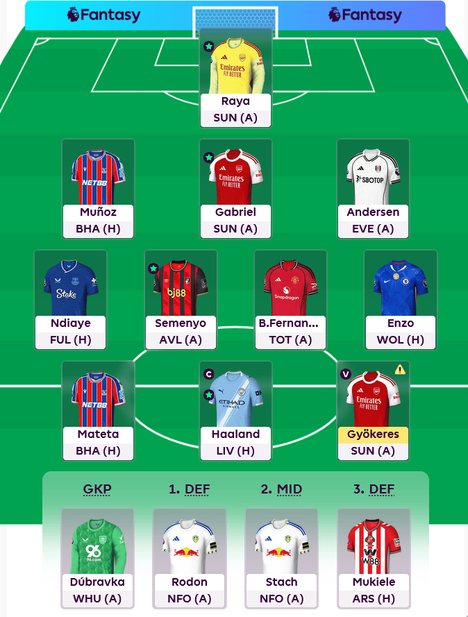 So close to rolling to 4 transfers again… Then Gyokeres got injured and seems to be ruled out for Gameweek 11. Now I am not completely ruling out just rolling and playing Reijnders after his two assists in the Champions League and back in the starting lineup.