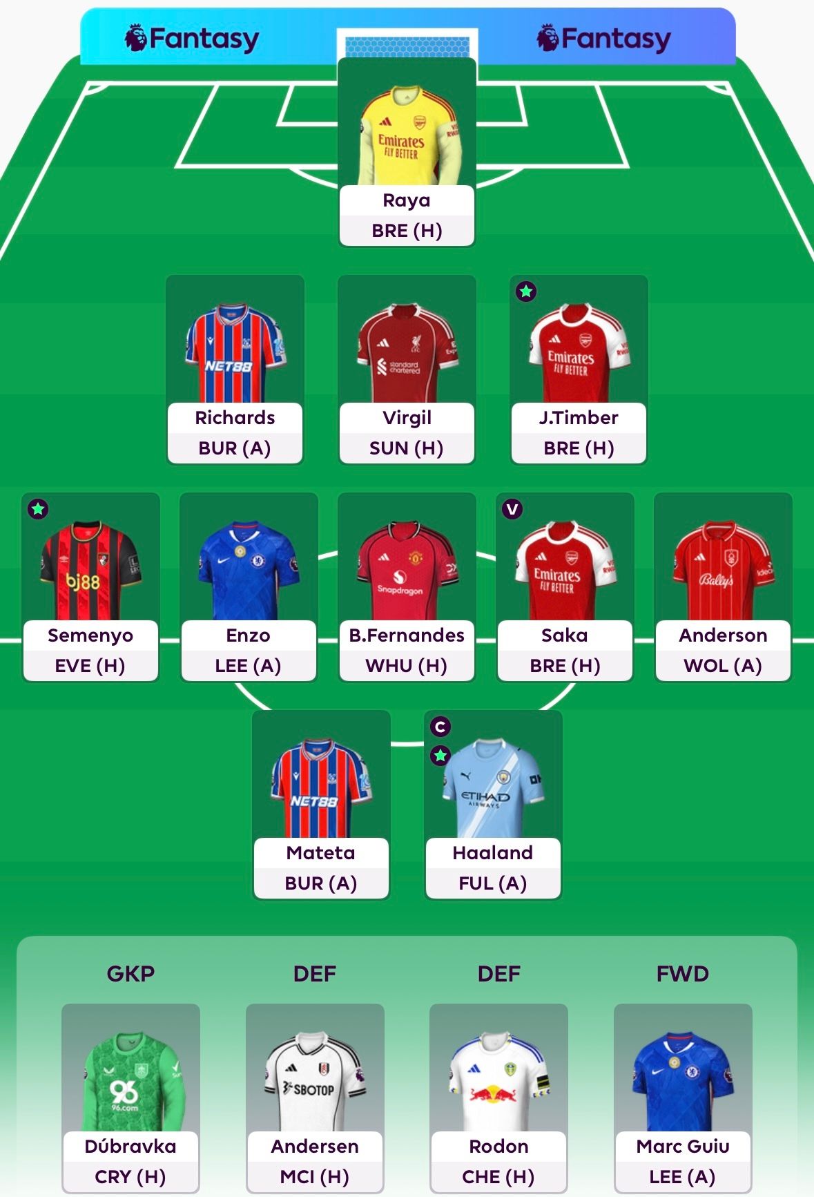So as of now, the plan is to just sell Sarr to Bruno, captain Haaland, and hope I can follow up FH13 with another green arrow!